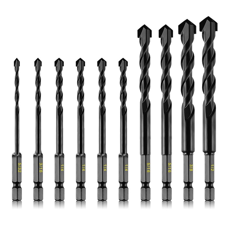 10-Piece Masonry Drill Bits Kit for Concrete, Stone, Carbide Drill Bit Set for Glass, Brick, Tile, Plastic, Ceramic and Wood Size 5/32 to 1/2 inch