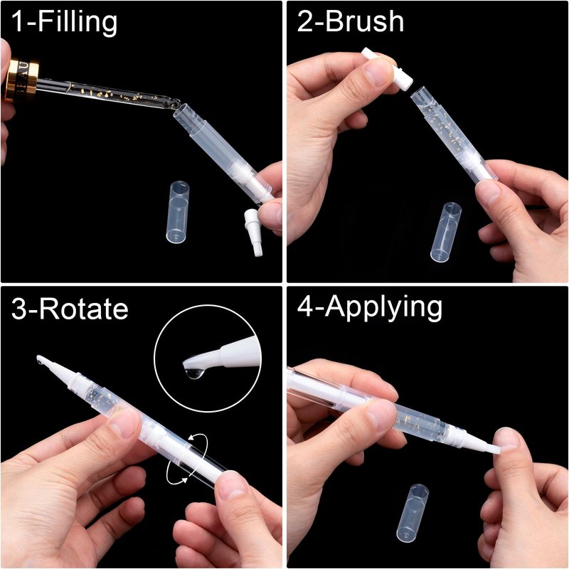 - Wide Application - These nail cuticle oil pens are suitable for filling a variety of liquid without leaking, such as lip gloss, nail nutrition oil, nail polish, eyelash growth, essential oil, teeth whitening, foundations, serums, perfume etc.