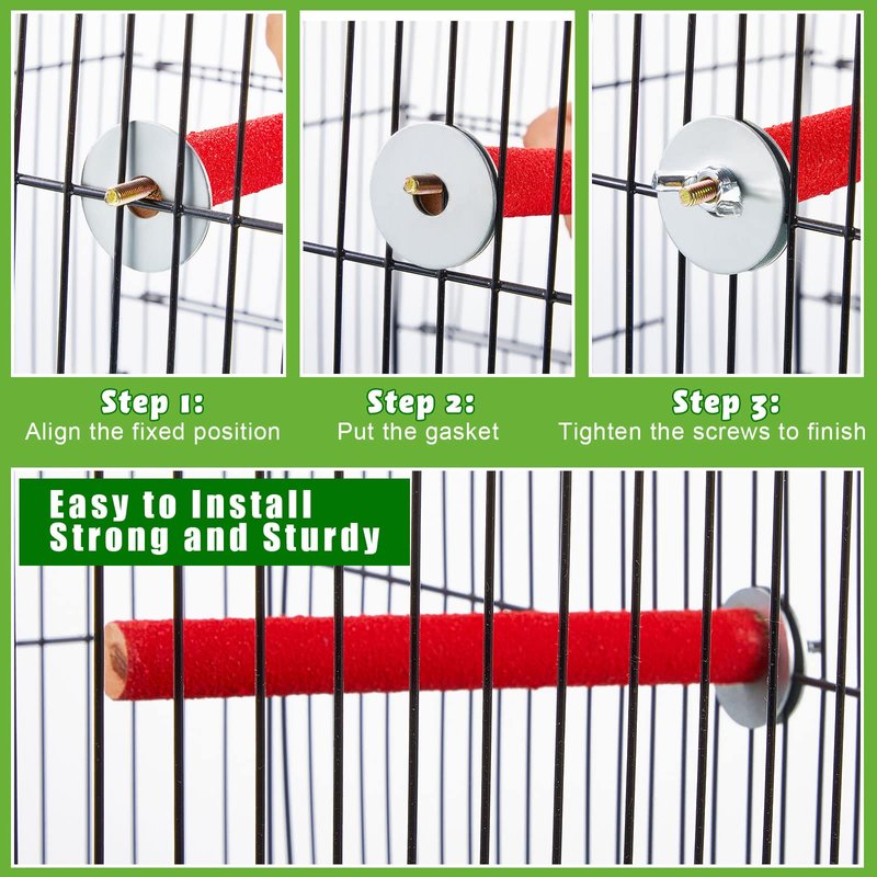 - Easy to Install: the parrot perch is easy to install since each stick is equipped with a screw, you can embed the end of the screw ring in the slot of the cage, and fix the screw, then the perch will be ready to serve your birds