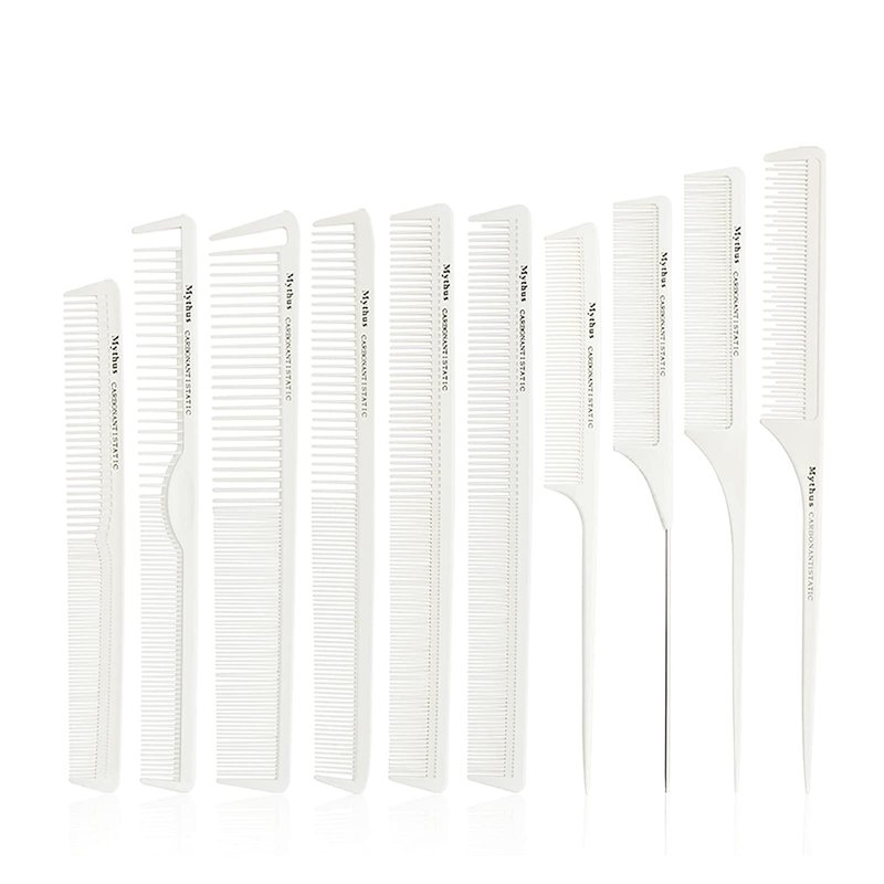 10 Pieces Carbon Hair Styling Comb Set: Professional Fine and Wide Tooth Comb Rat Tail Combs Anti Static Heat Resistant Hairdressing Comb for All Hair Types Types & Styles(White)