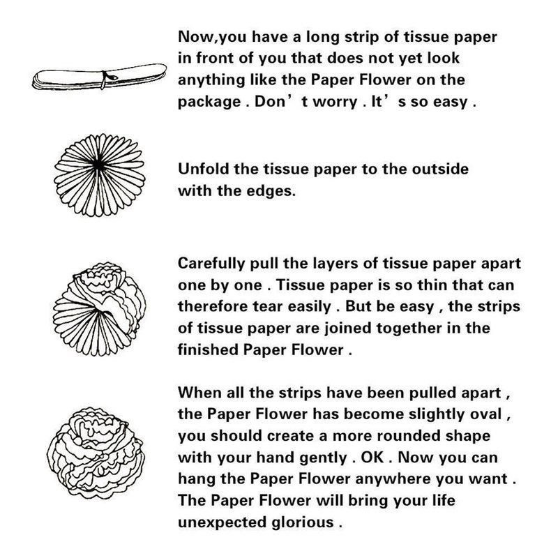 2).8*Tissue Pom Poms: diameter is 10 inches for each pom pom; 8 colors(red/rose red/pink/purple/mint green/blue/apple green/orange). Easy to diy: