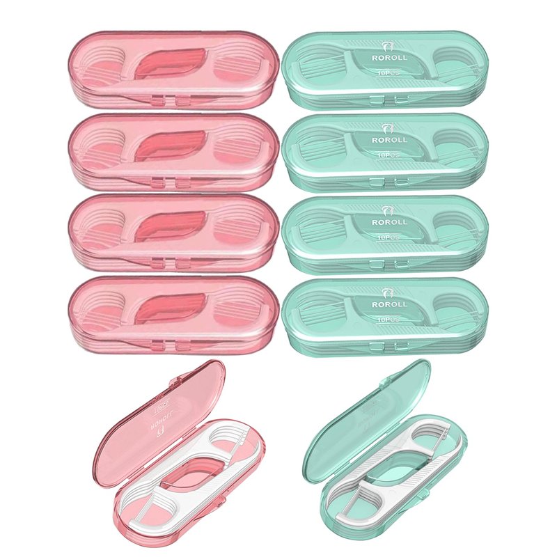 10 Pieces Holy Rose Travel Dental Floss Case-Micro Floss ToothPicks-Portable Flosser Picks Cases Contains Floss Stick 100 Count Sealed Storage for Teeth Cleaning (Green+Pink)