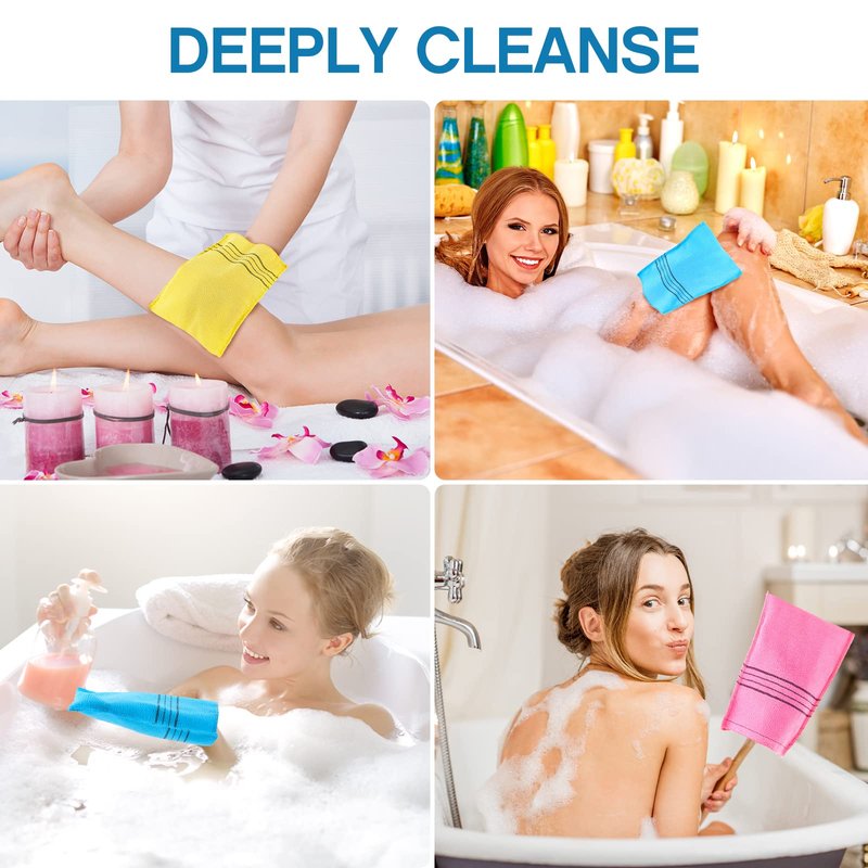 - Good performance: the double sided exfoliating shower towels mitt can help you remove dirt, grease and impurities from the whole body, make your skin soft and shiny, suitable for cleaning arms, legs, chest and back; Be careful not to use them on your face to avoid unnecessary harm