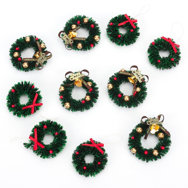 10 Pieces Mini Artificial Christmas Wreaths Ornaments, Dollhouse Miniature Christmas Wreath Doll House Mini Xmas Wreath for Dollhouse Door Windows Christmas Tree Decoration (2 Styles)