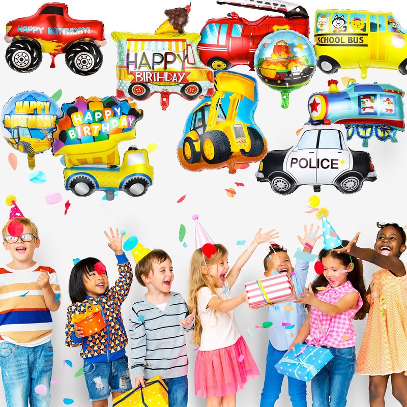 - Eye-catching appearance: these foil balloons are designed around cartoon vehicle patterns, such as truck, car, train, firetruck, police car, bulldozer and more, vivid and cute, nice decorations for children's birthday party