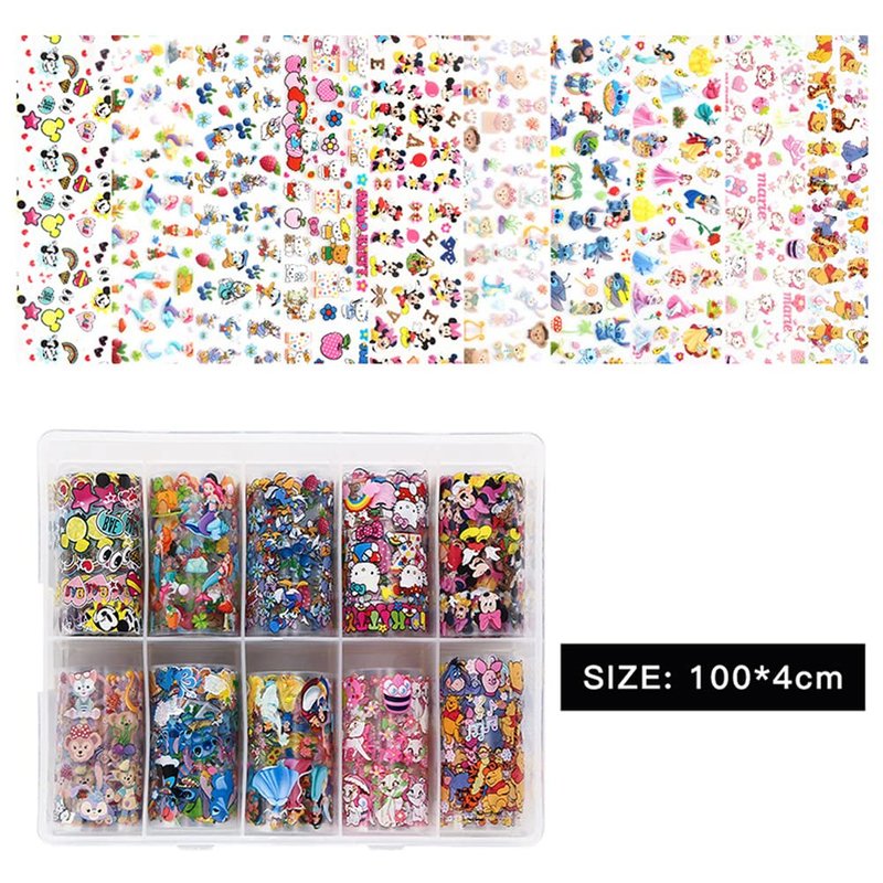 10 Rolls Cute Cartoon Nail Foil Transfer Stickers Nail Art Supplies Designer Nail Stickers Holographic Nail Art Foil Decals Cartoon Nail Designs for Women Kids Girls Acrylic Nails Decoration