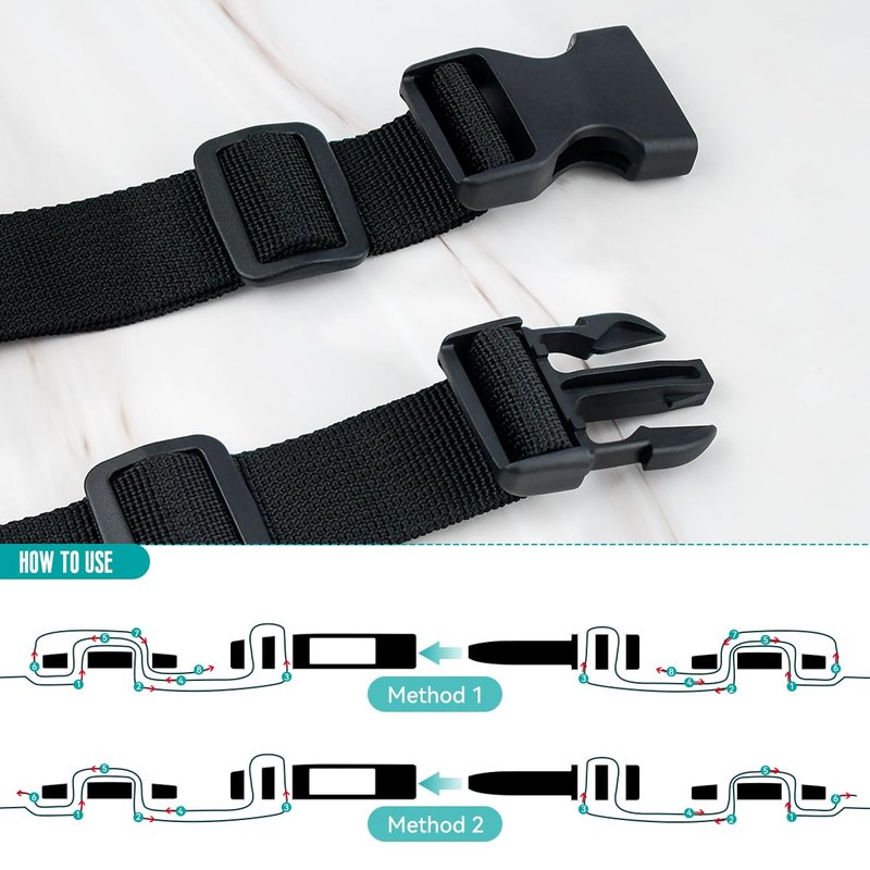 - Easy to Use: No sewing is needed, no need other tools.These side quick release buckles are great for their speed and lightness, very easy to use and operate, please notice that one side can adjust