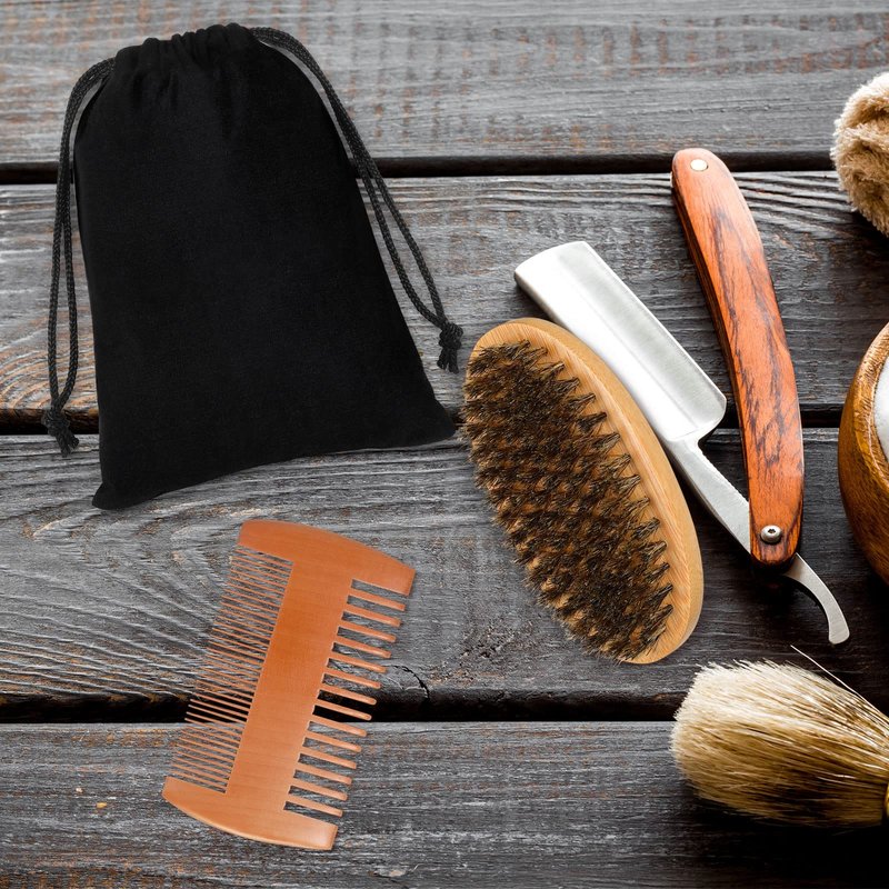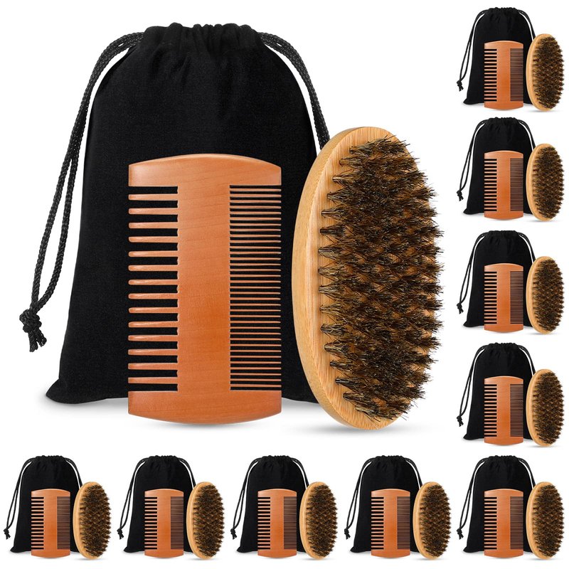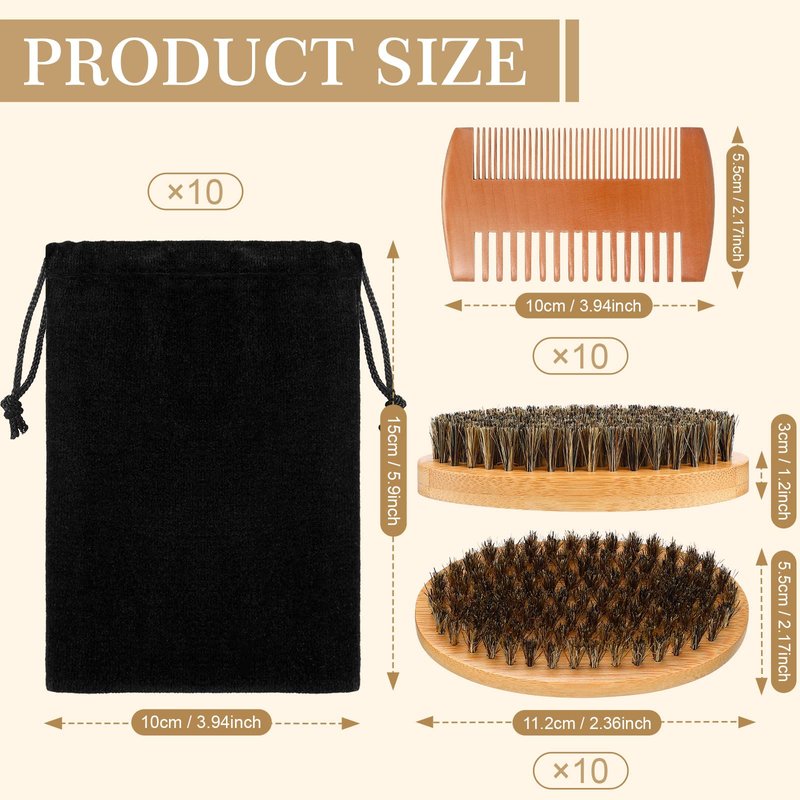 - Large Quantity: you will receive 10 sets of beard grooming kit, each set contains a oval beard bristles brush, wood beard comb and a black drawstring bag, the quantity is large so that you can easily replace during the use, you can also share also others to use