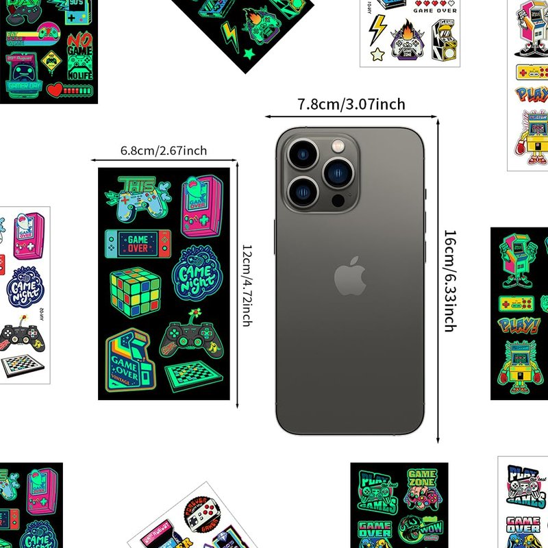 - Package includes:Comes with 10 sheet various styles of gaming stickers, you can share them with your family and apply them to makeup together!Each sheet tattoo size is 4.7x2.7inch/12x6.8cm.