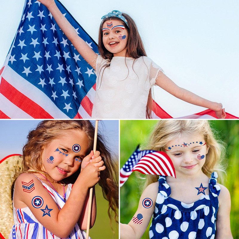 - ✯UNIQUE & CREATIVE: Our 4th of July face tattoos include different patriotic designs: American flags, stars, hats, gun, stripe and more. providing kids with unique and creative decoration options. Meanwhile, a variety of colours and patterns are available to meet kids' different preferences.