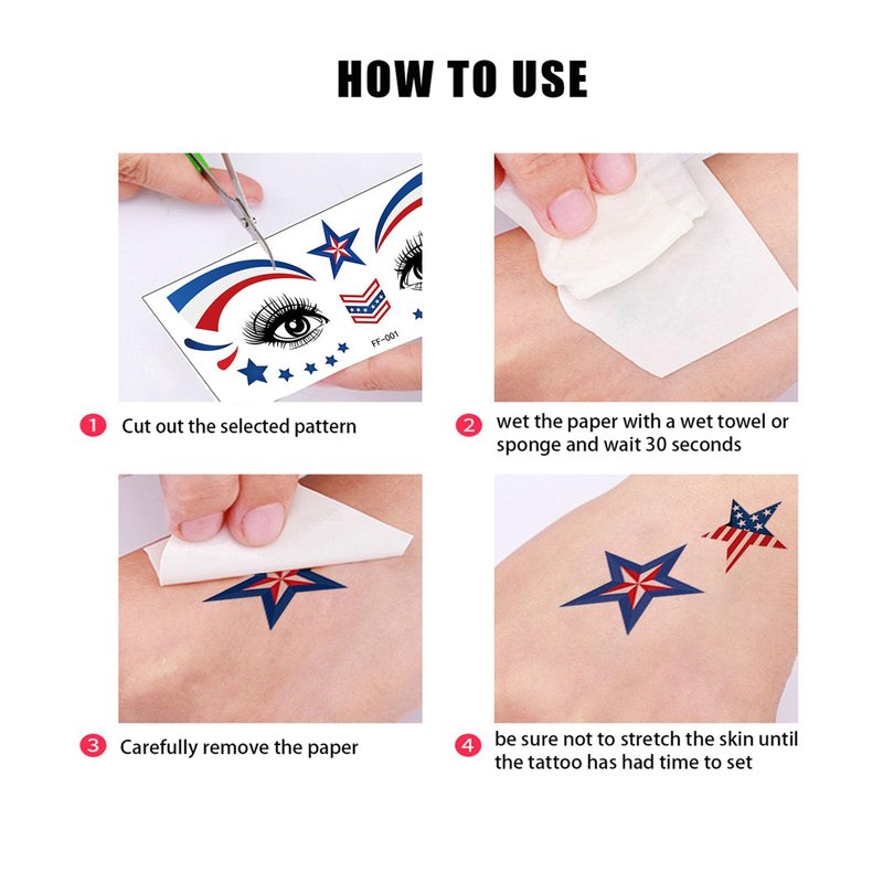 - ✯SAFETY & EASY TO USE: This 4th of July face tattoos sticker made of high-quality, non-toxic and eco-friendly materials to ensure safety and harmlessness. Meanwhile, its easy-to-use design can easy to finish the tattoos on their own for added fun.