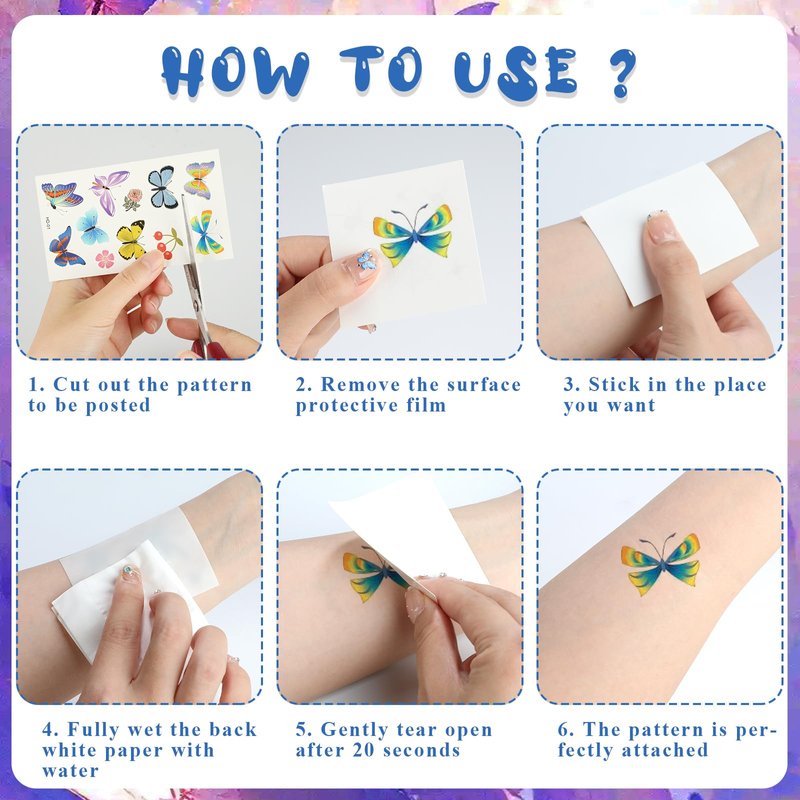 - Easy to Apply and Remove: These kids temporary tattoos are user-friendly and can be applied with just a touch of water or a damp sponge in about 10-20 seconds. Adding a touch of fun to your child's look has never been easier. Removal is quick and effortless with cleansing oil, causing no harm to your child's skin.