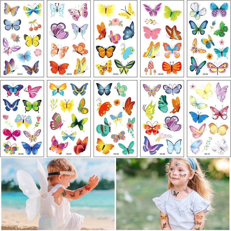10 Sheets Butterfly Temporary Tattoos,Waterproof Butterfly Cartoon Stickers,Fake Tattoo Stickers for Women and Girls Party Favors Supplies,Holographic Stickers for Kids Birthday Party Supplies