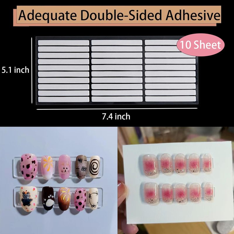 - 💅💅【Large Quantity】-- The package includes 10 Sheets Double Sided Tapes and a tweezer. Don't worry about not having enough tape anymore. Our double sided mounting tape is perfect for all your nail art display stand and press on nails packaging needs!