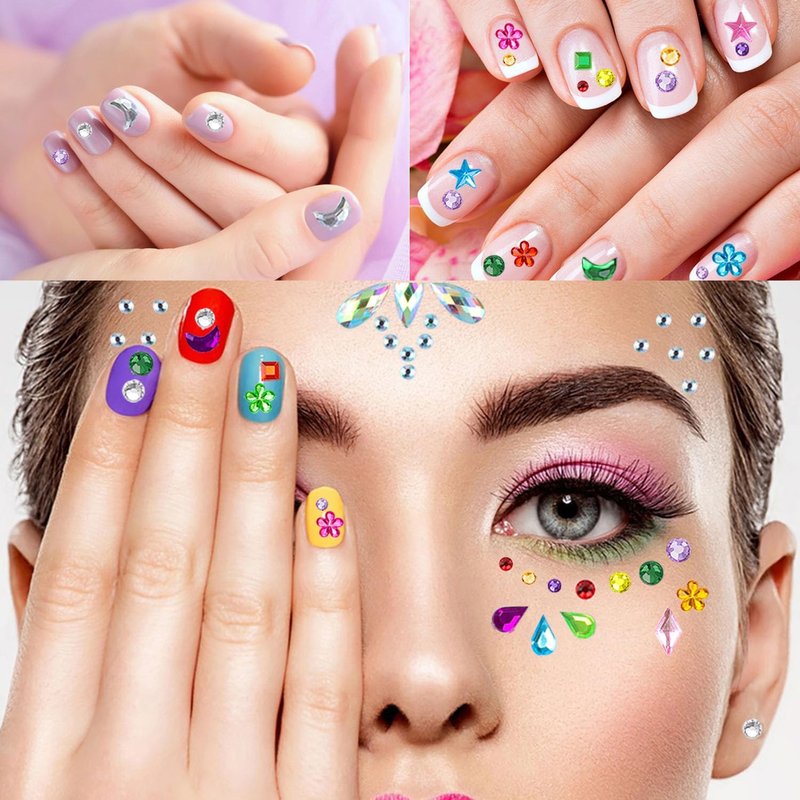 Our product is made of rhinestone and acrylic diamond, safe and stable, the face gems are also re-usable, clean them after your first time use, they can be applied again by using eyelash glue or body glue.