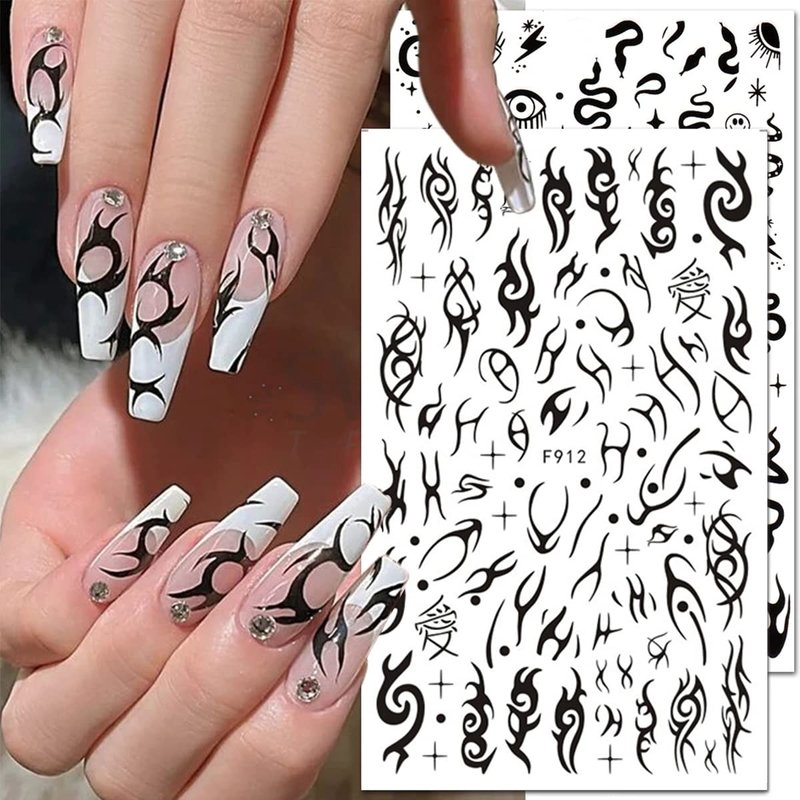 10 Sheets Gothic Nail Stickers 3D Self-Adhesive Snake Nail Art Stickers Black White Rose Flower Eye Fishbone Star Moon Design Nail Art Decorations Butterfly Nail Decals for Women Acrylic Nail Supplies