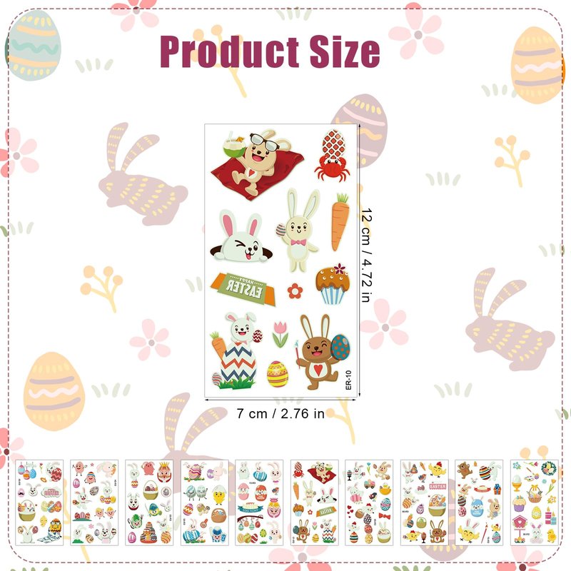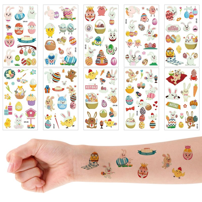 - Package Contents: You will receive 10 sheets of Easter tattoo stickers with classic Easter elements, each with a different pattern. You can stick on your arms, face, and hands.