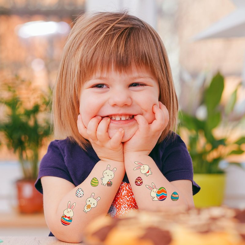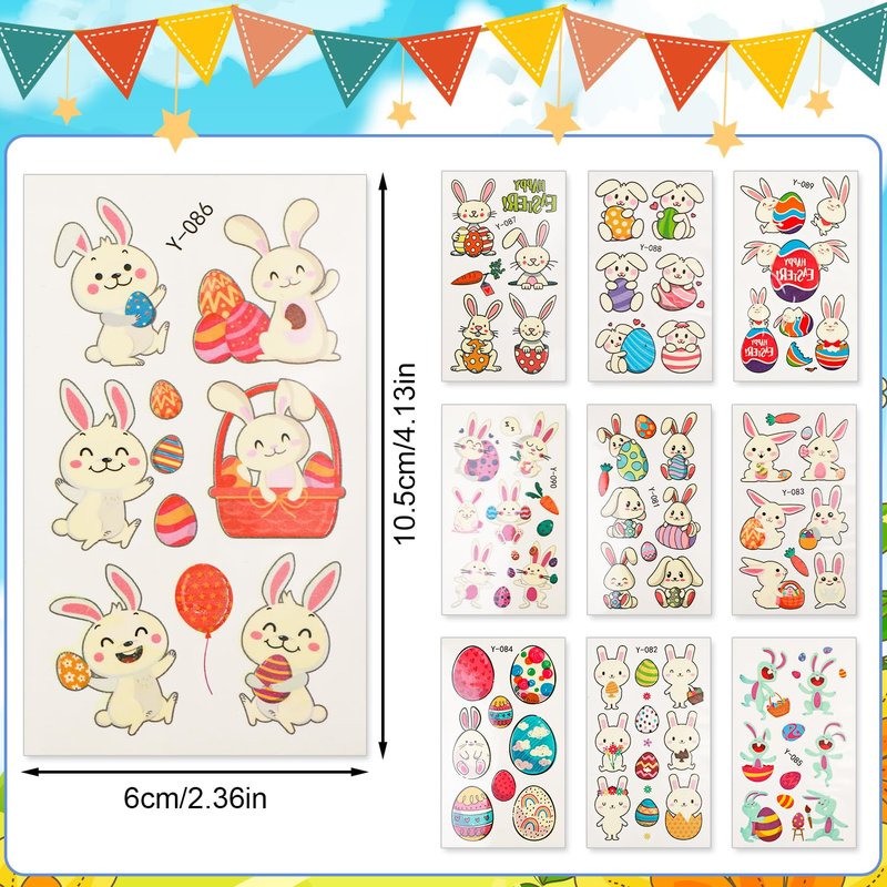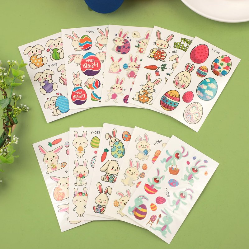 - Wide Application: These creative temporary tattoo stickers are perfect for Easter parties, party favors and decorations, basket fillers for kids, egg hunting game, etc. You can also paste them on smooth objects, such as ceramics, glasses, water bottles, plastic, stainless steel, etc.