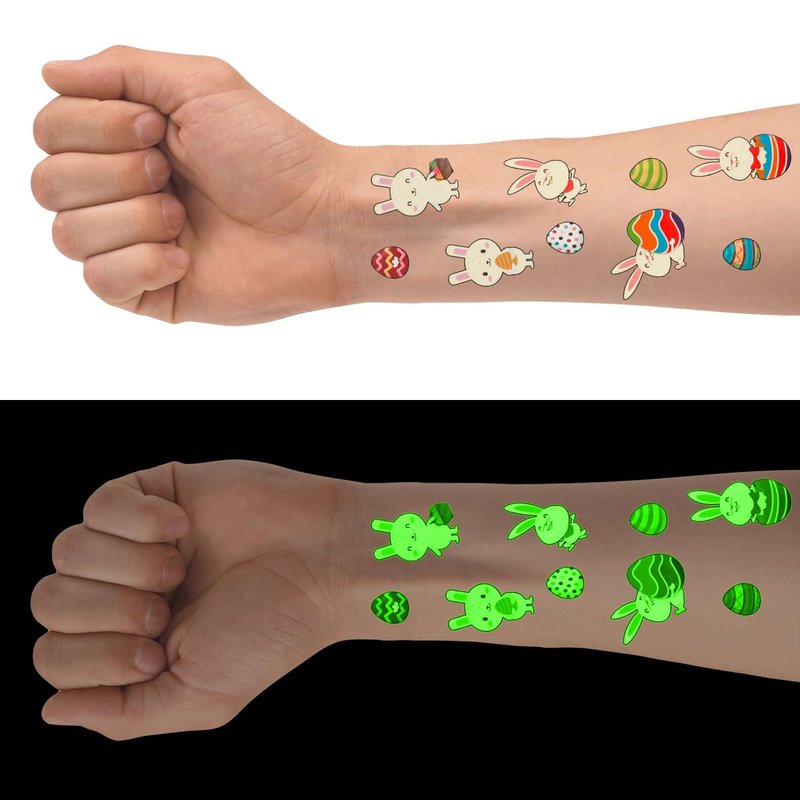 10 Sheets Luminous Easter Tattoo Stickers for Kids, Bunny Easter Egg Temporary Tattoo Glow-in-the-Dark Easter Tattoos for Boys Girls Easter Party Supplies Game Prizes