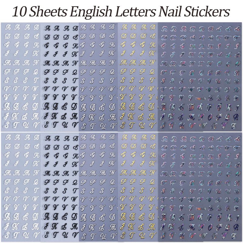 - Package: You will get 10 sheets retro English letters theme nail art stickers, Can add a strong fashion atmosphere. Perfect for women girls, exquisite nail design, DIY fashion nail decoration.