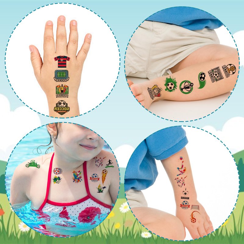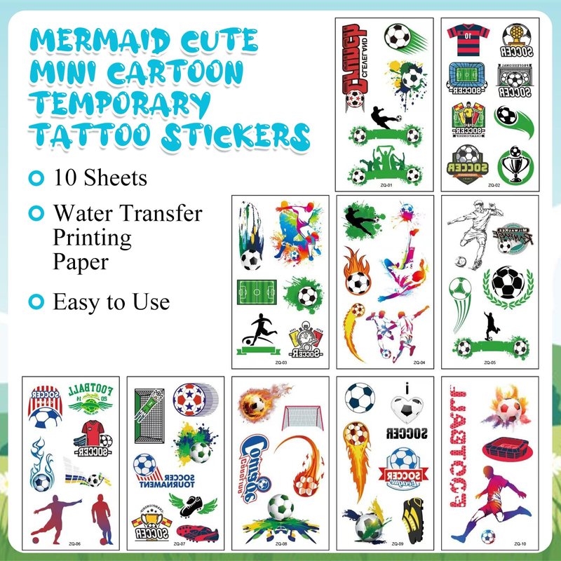 - Products Included : 10 sheets soccer temporary tattoo stickers in different designs. Each sheet measures 4.7in×2.7in(12cm×6.8cm).
