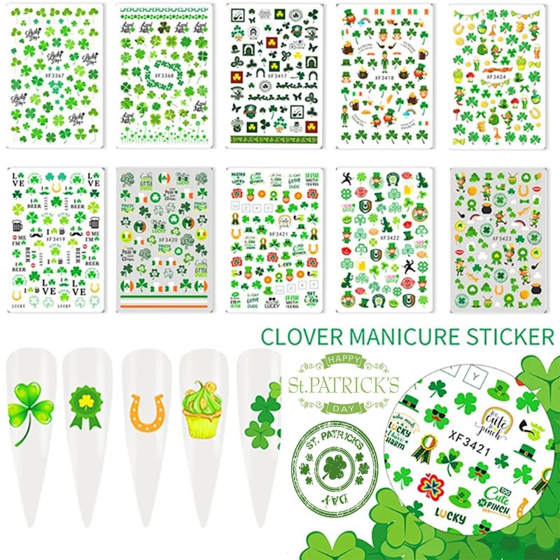- ☘【St Patrick’s Day Nail Stickers】You will get 10 sheets St Patricks Day nail art stickers, Lucky Irish nail decorations provide you with a variety of choices, give full play to your rich imagination of nail DIY.