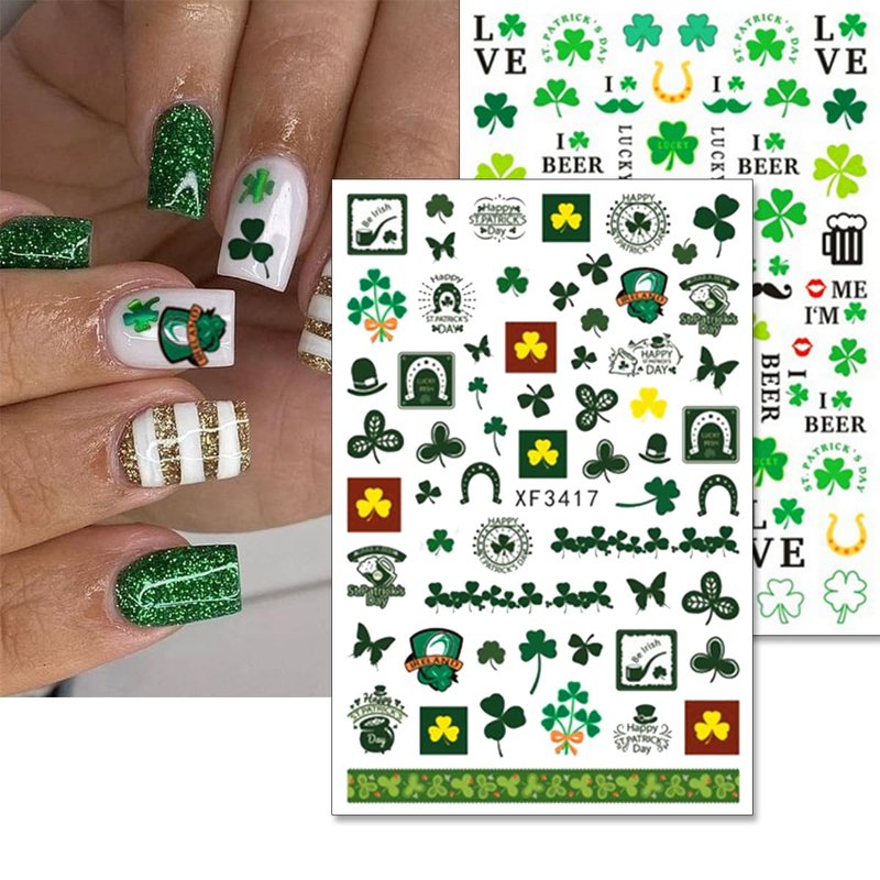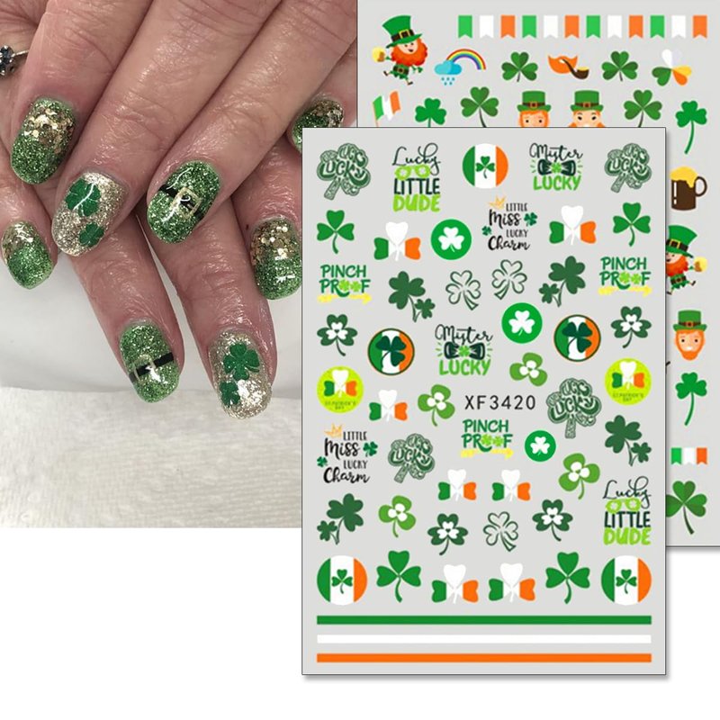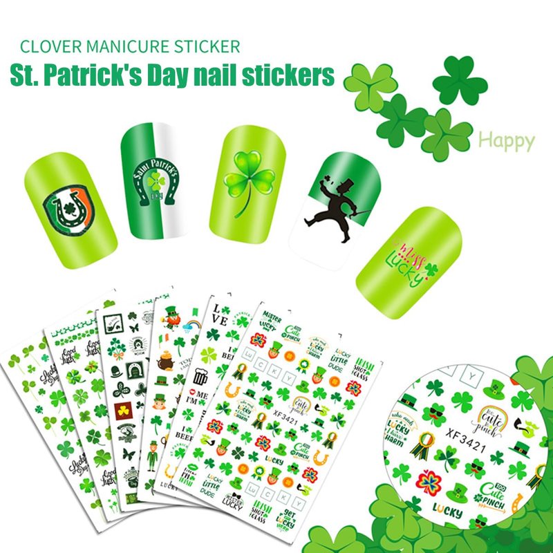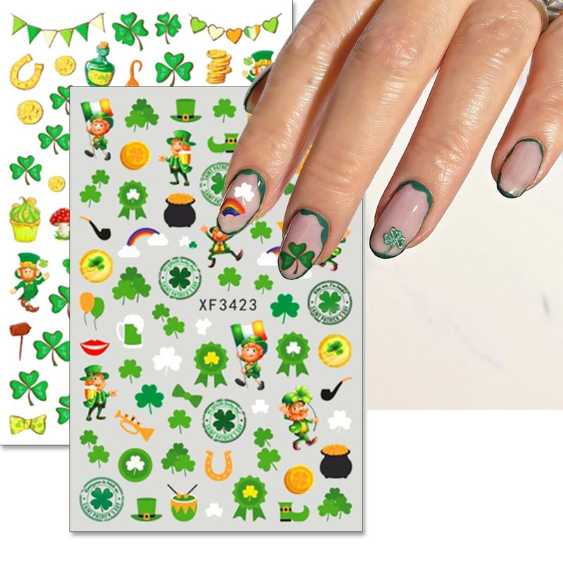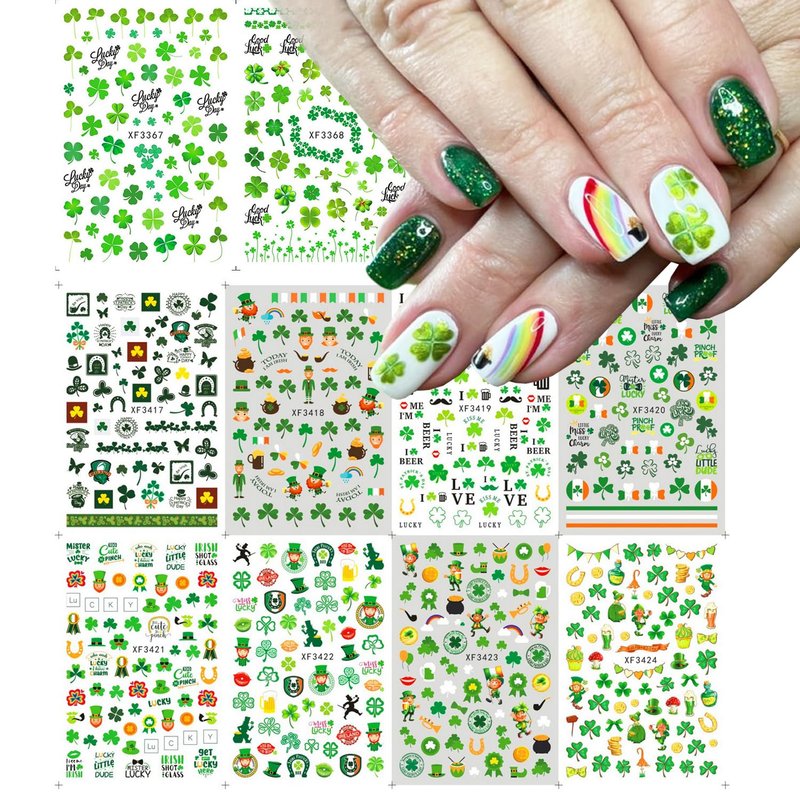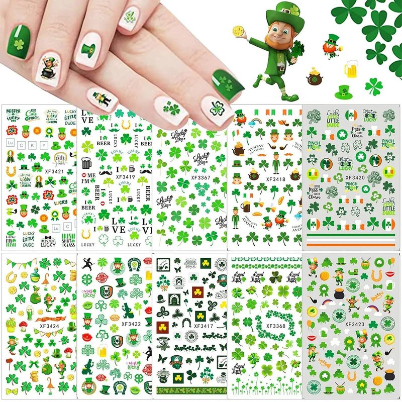 - 【Perfect Nail Sticker Set】You will get 10 sheets St. Patrick's Day Nail Stickers. Includes all sorts of classic St. Patrick's Day-style images: Shamrocks, Green Dwarf, Hat, Gold Coin, Leprechaun, Four Leaf Clover, Luck of The Irish Nail Sticker and other St. Patrick's Day manicure accessories.