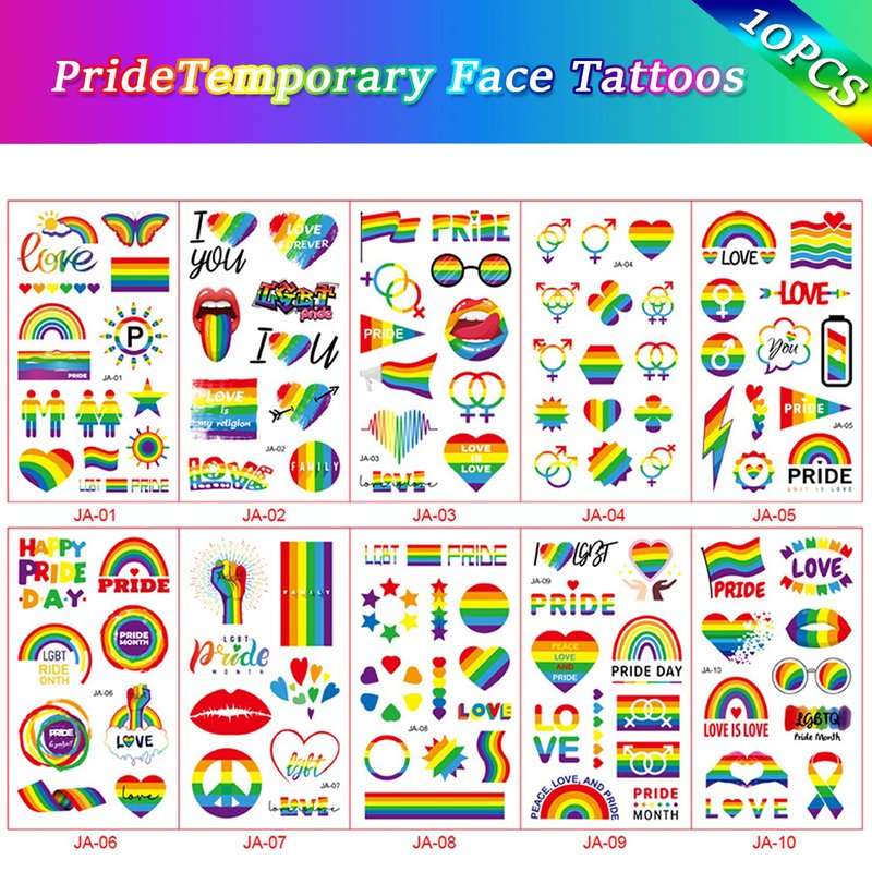 - 【Package】-- You will receive 10 tattoo stickers with 108 types of Pride Day themes! The size of each sheet of paper is 2.6 * 4.7 inches. These cute and fashionable Pride Day themed temporary tattoos are suitable for LGBT.