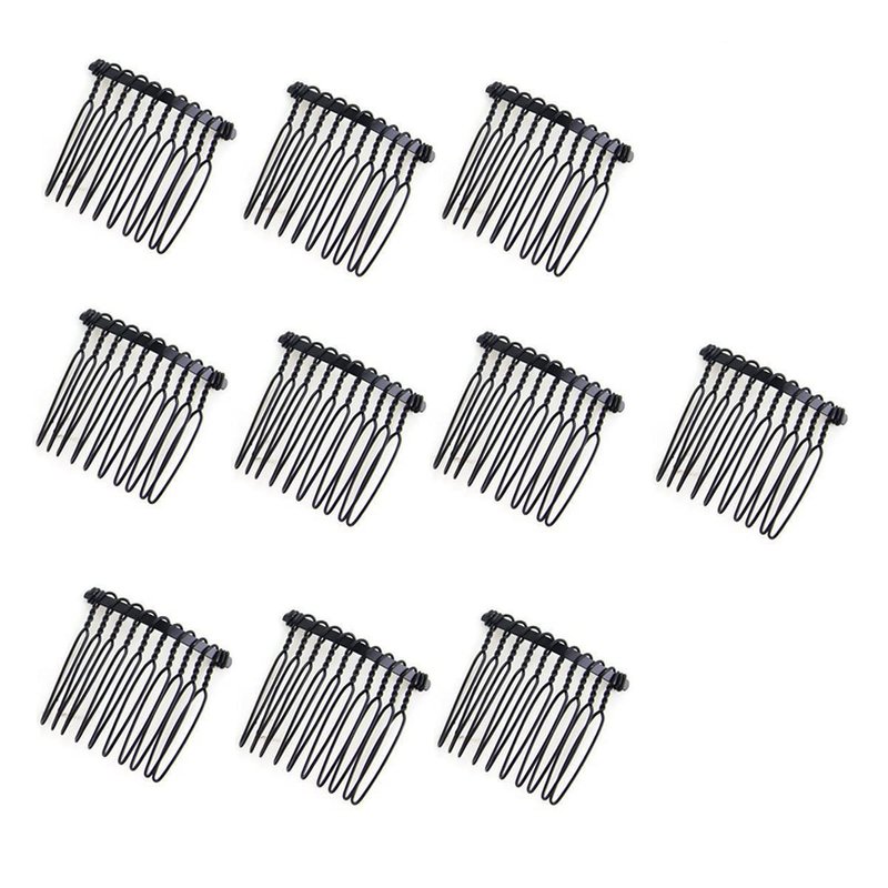 10 Teeth Metal Black Hair Clip Combs Magic Hair Side Barrettes Pins Wire Twist Bun Clamp Invisible Hair Styling Maker Bang Comb 10Pcs