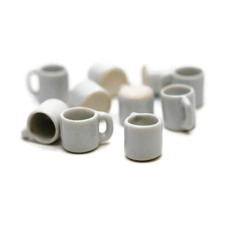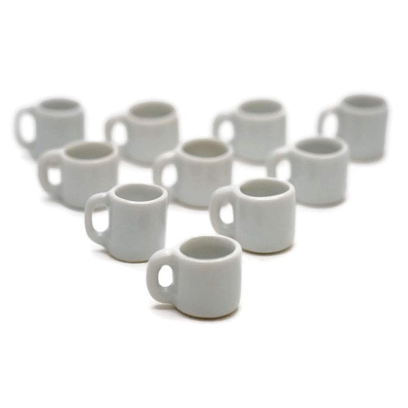 10 White Gray Coffee Mug Tea Cup Appro Size 1.2 Cm Dollhouse Miniatures Food Kitchen