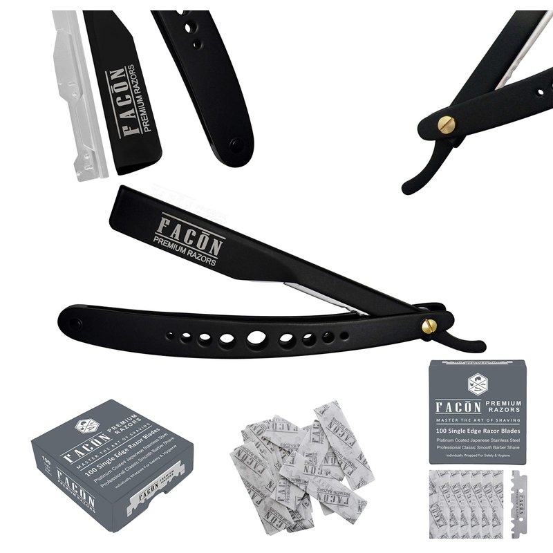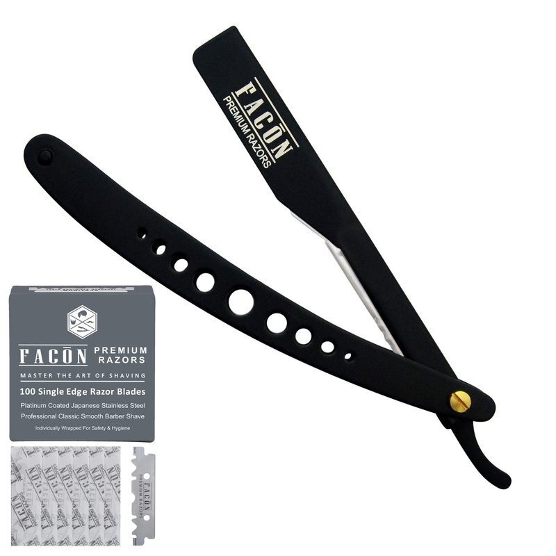 100 BLADES + Facón Professional Adjustable Straight Edge Barber Razor - Salon Quality Cut Throat Shavette