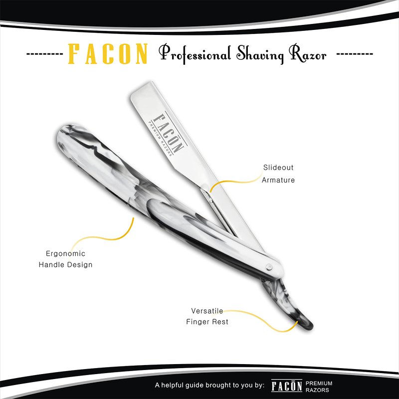 100 BLADES + Facón Professional Marble Straight Edge Barber Razor - Salon Quality Cut Throat Shavette