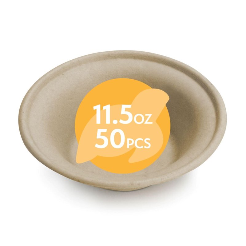 100% Compostable Paper Bowls (11.5oz, Pack of 50) Soup Bowls, Pasta Bowls, Cereal, Salad, Ice Cream, Disposable Bamboo Small Bowls, Biodegradable, Unbleached by Earth's Natural Alternative