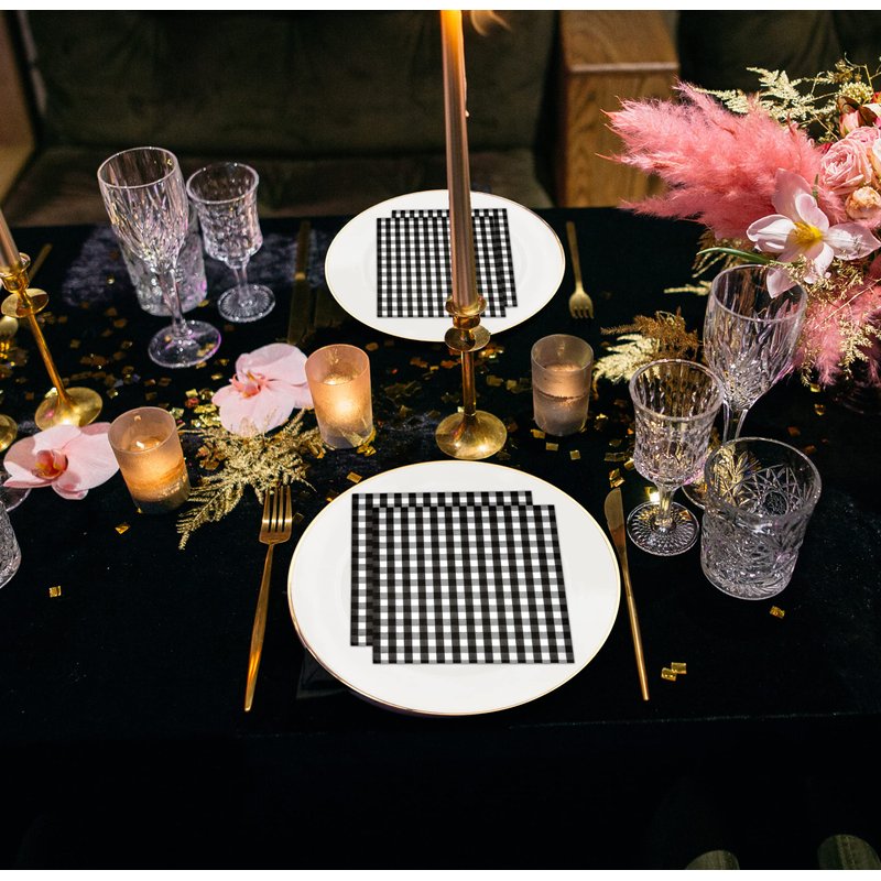 - Enough for your guests: Stock up with this set of black and white checked square napkins to make sure you have enough for all your guests who will attend your party. Serve dinner to guests in catering, buffet, potluck, events, or daily meals. Ideal for dinner table placement, office, party decor, powder room, bathroom vanity, kitchen counter top, and guest bathrooms.