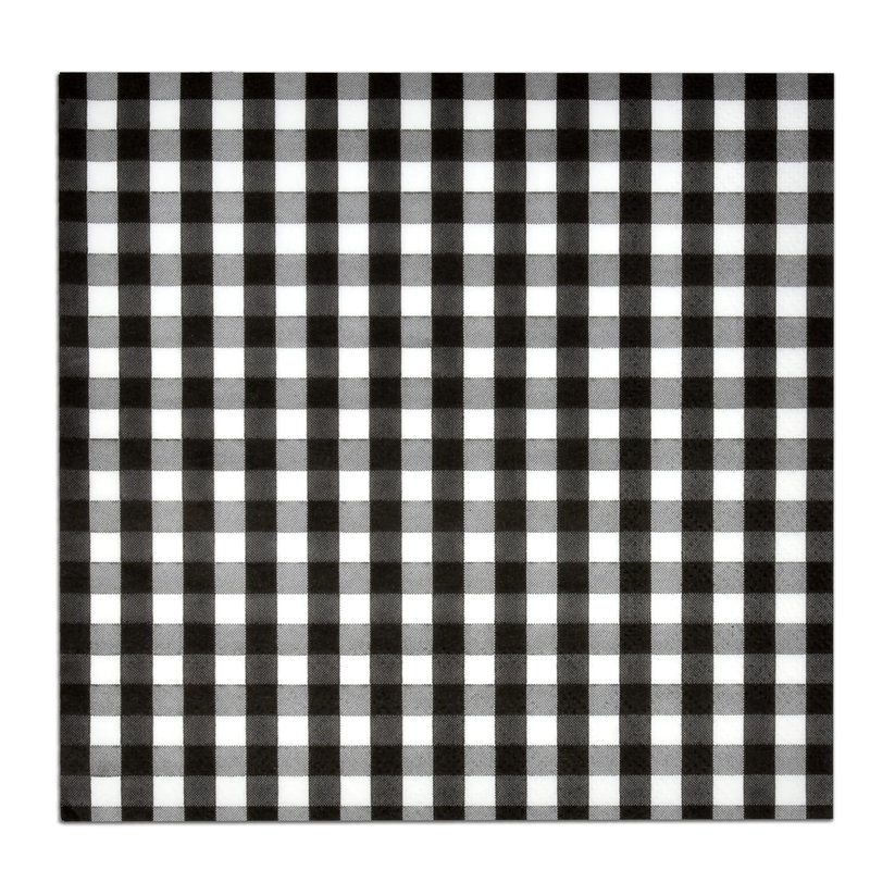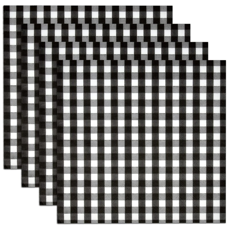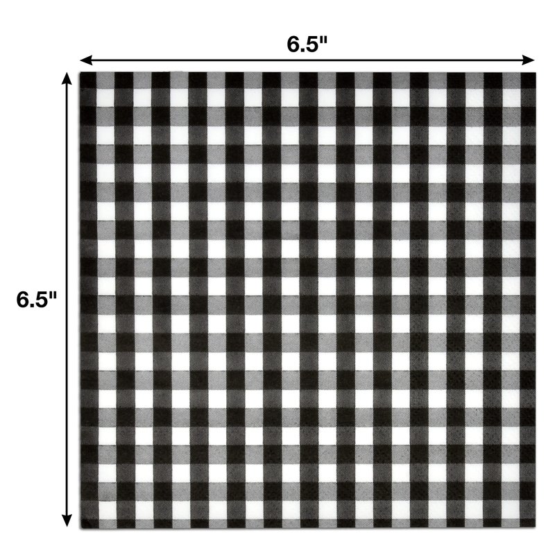 - Black Gingham Beverage Napkins Serve 100: Gift Boutique black & white gingham cocktail napkins includes 100 cocktail napkins featuring black and white plaid! These napkins will definitely enhance your table and impress your guests. Napkins are 3-ply and measure 10” x 10” when unfolded and 5” x 5” when folded.