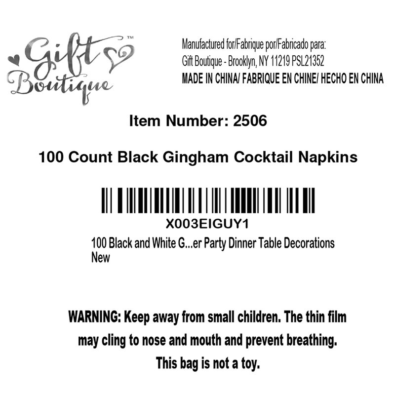 Black Gingham Beverage Napkins Serve 100: Gift Boutique black & white gingham cocktail napkins includes 100 cocktail napkins featuring black and white plaid! These napkins will definitely enhance your table and impress your guests. Napkins are 3-ply and measure 10” x 10” when unfolded and 5” x 5” when folded. For gatherings & special events: Perfect for 50th anniversaries, birthday parties, gender reveal, baby showers, tea party gatherings, camping trips, and wine tasting. Flawless napkins for wedding receptions, bridal shower, engagement and graduation parties, fancy restaurants, holidays, hearty lunch and more! Treat your guests with all the attention they truly deserve! High quality: Napkins are made of high-quality thick paper and are soft and absorbent. These black and white checkered napkins will be great for any picnic, BBQ, grilling, burgers, beach, spring, and summer party. The black plaid party napkins really add dimension to your parties as your guests will love the cute and pretty design. Enough for your guests: Stock up with this set of black and white checked square napkins to make sure you have enough for all your guests who will attend your party. Serve dinner to guests in catering, buffet, potluck, events, or daily meals. Ideal for dinner table placement, office, party decor, powder room, bathroom vanity, kitchen counter top, and guest bathrooms. More time to enjoy: Disposable paper reduces clean-up time so you can enjoy more time with friends and family. After the party just collect the tablecloths with all the garbage and throw it into the trash can. Presto! Cleanup completed!