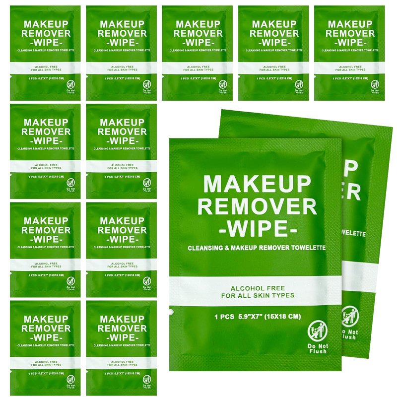 100 Count Makeup Remover Wipes Bulk Individually Wrapped, Travel Towelette Makeup Remover Individual Gentle Cleansing for Face Mascara Lipstick Remove Makeup