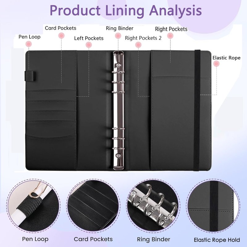 - 💰【Multifunctional Budget Binder】In addition to cash, this binder also holds business cards, credit cards, pens, bills, receipts and notes. The padded PU leather binder and premium PVC cash envelopes are waterproof, tear-proof and scratch-proof, protecting your belongings from water and dust. Carry it with you and stay organized, say goodbye to other complicated money storage jars.