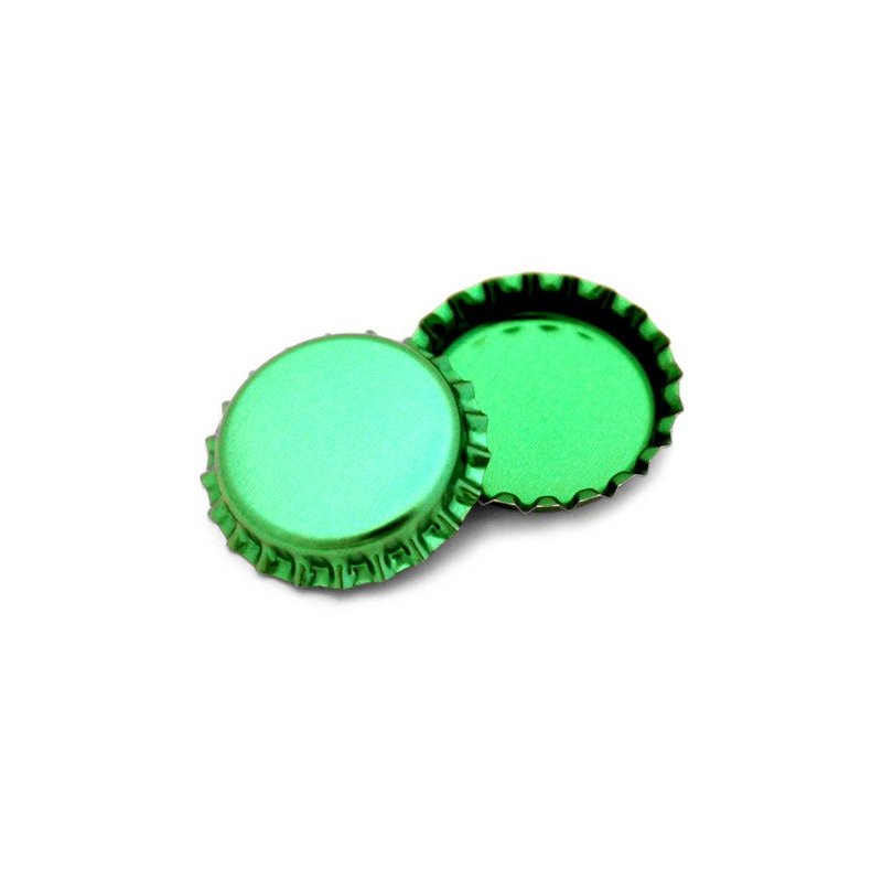 Description: 100 Pack of Lime Green Metallic Bottle Caps Check out our other colors! Double sided color Brand New, Never Used No Writing or Insignia anywhere on these caps! NO RUBBER LINER on any of our bottle caps!