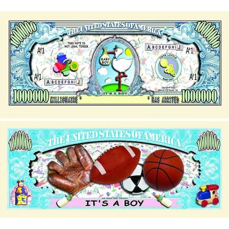 100 It's A Boy Million Dollar Baby Bills with Bonus “Thanks a Million” Gift Card Set