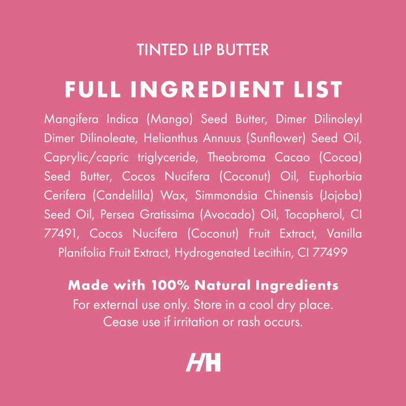 - Tinted Lip Butter - leave in conditioner that naturally plump lips overnight. Deep conditioning lip moisturizer for very dry lips making lips fuller visually. Helps rejuvenate skin for luscious lips.