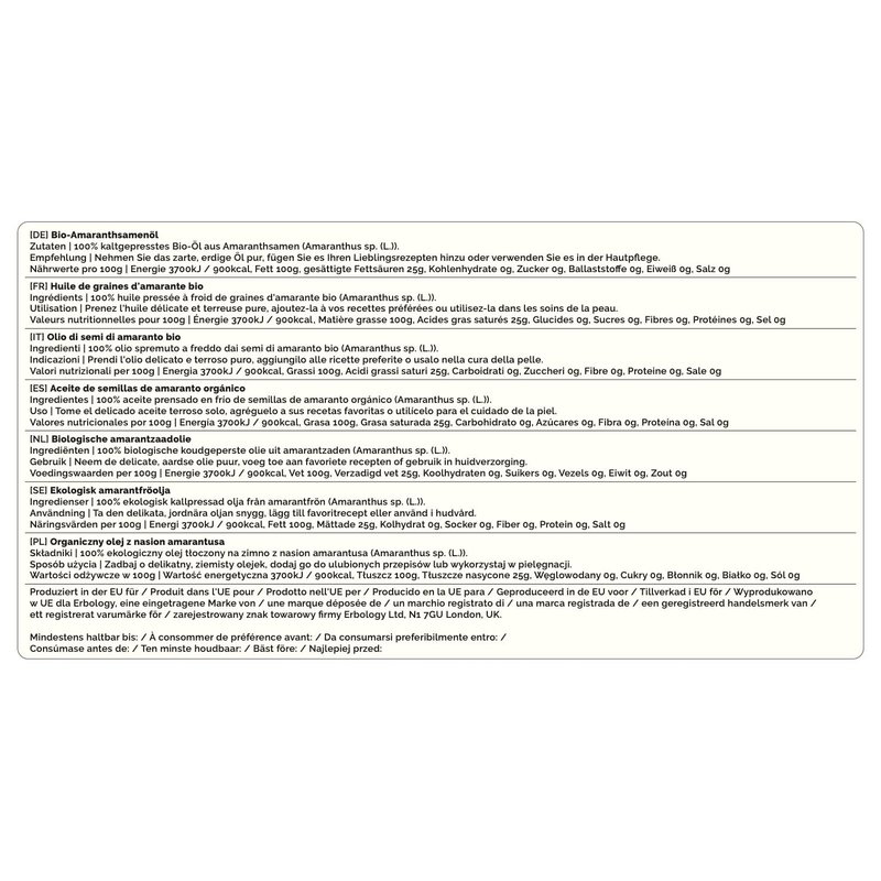 - COLD-PRESSED: From small batch amaranth seeds to preserve its precious nutrients