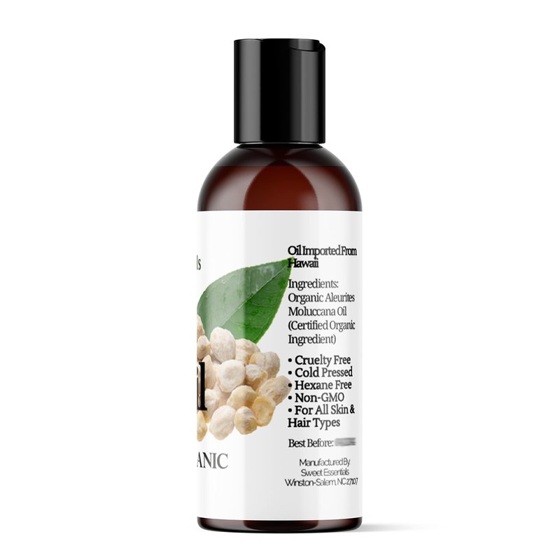 100% Organic Kukui Nut Oil | Imported From Hawaii | Various Sizes | 100% Pure | Cold-Pressed | Natural Moisturizer for Skin, Hair and Face | By Sweet Essentials (2 fl oz)
