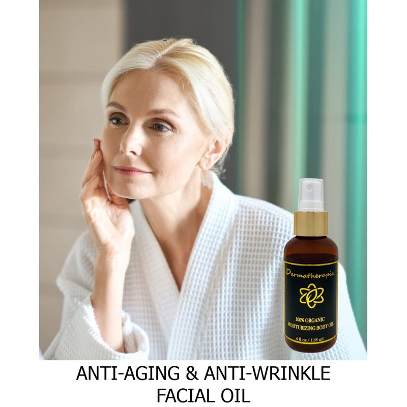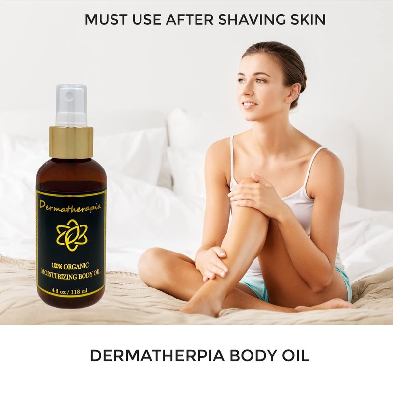- Dermatherapia Luxury Organic Body and Hair Oil delivers results without chemicals. Just one pump is enough for entire face, hair or hands. Goes on smoothly and absorbs quickly, leaving behind a layer of long lasting moisture. Great for use day or night. Dermatherapia oil absorbs quickly into the skin improving moisture and promoting silky hair. The ultimate for daily personal care. Hypoallergenic, perfect for stressed and sensitive skin. Lightweight golden oil is non greasy and non clogging.