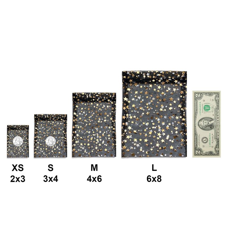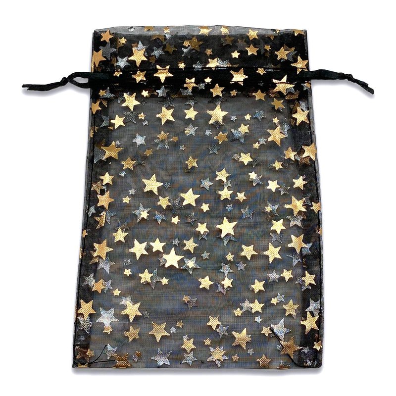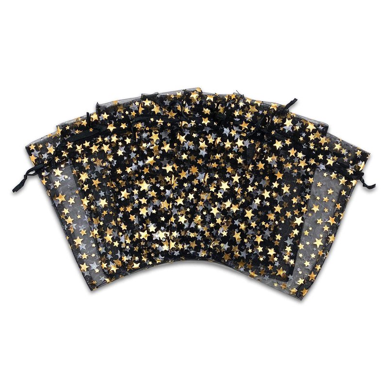 100-Pack 4x6 in Sheer Organza Gift Bags with Drawstring (Medium) - Metallic Stars (Black/Gold) - for Wedding Party Favors, Jewelry, Candy, Treats Mesh Pouch by The Display Guys
