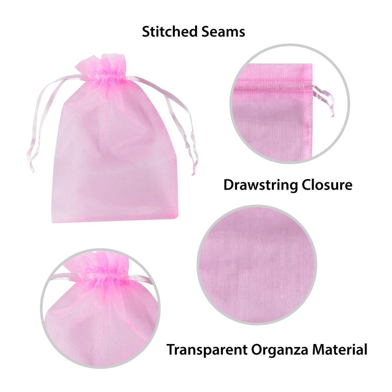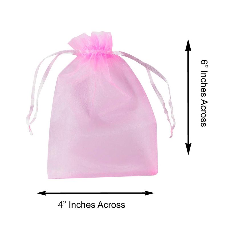 100 Pack 4x6 Inch Mini Sheer Drawstring Organza Transparent Bags Jewelry Sack Pouches for Wedding, Party Decorations, Arts & Crafts Gifts (Pink)