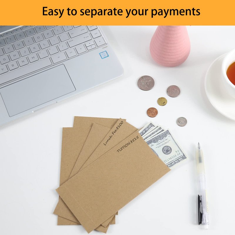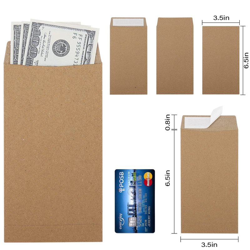 - Cash envelopes: Contains 100 pack Self-Adhesive Kraft envelopes for Budgeting or Storing items (6.7 x 3.5 inch) 120 GSM Paper: Better quality for the same price