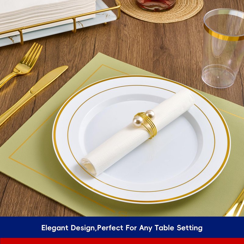 Do you tired of having wet used towels piling up? Our disposable hand towels will provide a more luxurious and sanitary experience for you and all your guests. About Us JOLLY CHEF specializes in disposable tableware products.Our main products include cups, plastic plates, plastic forks, knives, spoons, hand towels, jelly shot syringes, and more. Our production plants are recognized for their quality, originality, and style. Believe and choose JOLLY CHEF to make your party more eye-catching and impressive. HIGH QUALITY These Napkins are made of high-quality thick paper Napkins are soft and absorbent and dry your hands quickly. These gold foil napkins will be great for any party. PERFECT FOR GUEST BATHROOM Made of Super Soft Materials that are Pleasant to use and so pretty at the same time! Maximum Absorbency Materials to Wipe everything up! BEAUTIFUL TABLE DECOR Gift Boutique serves you the most beautiful dinner napkin. These will truly enhance your party table. Comfortable Host your guest with ease and comfort, but with an elegance that will ensure them a great time. Specifications Material: paper Package size:8.07"*4.33"*4.33" Package Weight:1.32 lb Package Includes 100 * Disposable hand towels