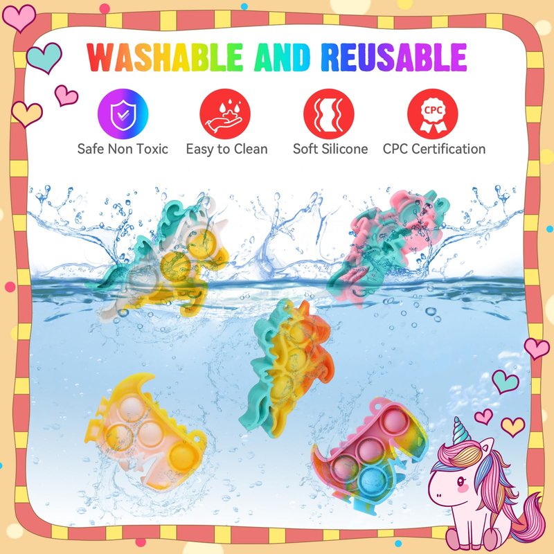 - Mini Fidget Toys Keychain: Dinosaur and unicorn pop fidget toys for kids' party favors, goodie bags, and treasure box toys for classroom prizes they make perfect prizes for elementary students as well