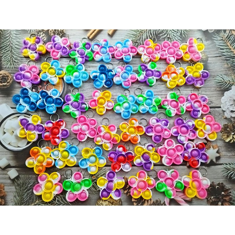 100 Packs Bulk Flower Backpack Keychain Mini pop Fidget for boy and Little Girl,Kids, Birthday Party Favors,Students Bubble Prize